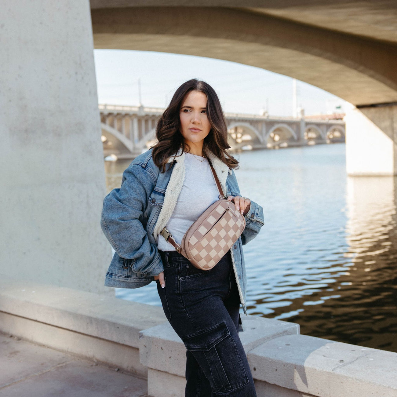 Front panel checkered detailing adds texture and style