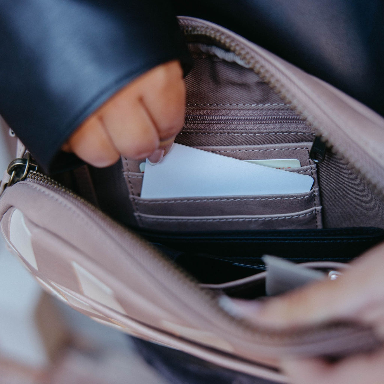 3-slot built-in wallet inside the main compartment for secure card storage