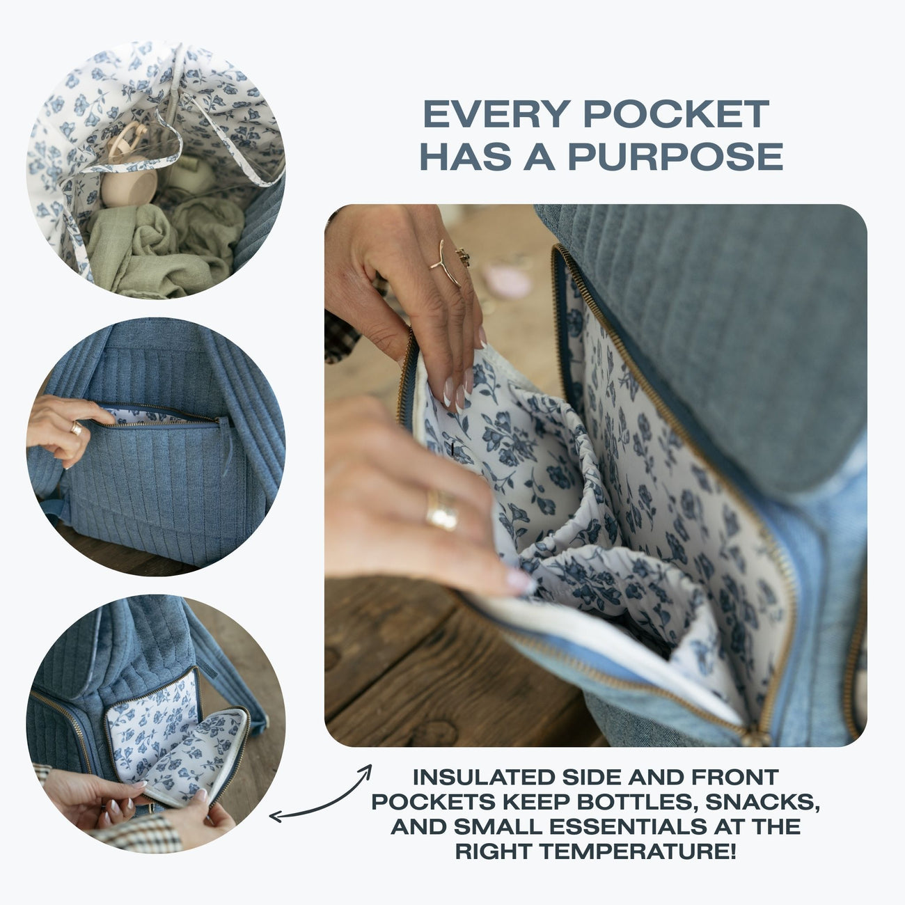 Two insulated zippered side pockets for grab-and-go essentials