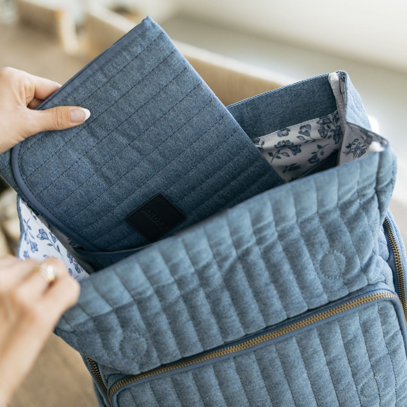 • Dedicated pocket for changing pad storage