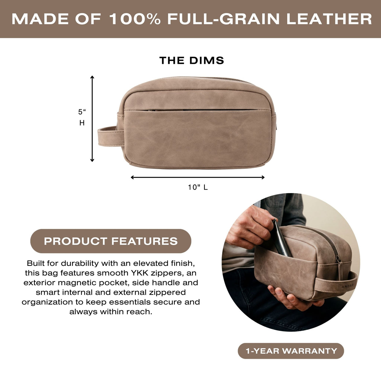 We only use the best full-grain leathers that will be beautifully unique as our leathers develop a rich patina with use.